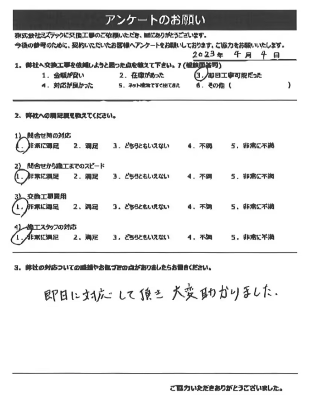 わかりやすい説明とスピーディーな工事で、あっという間に終わりました。