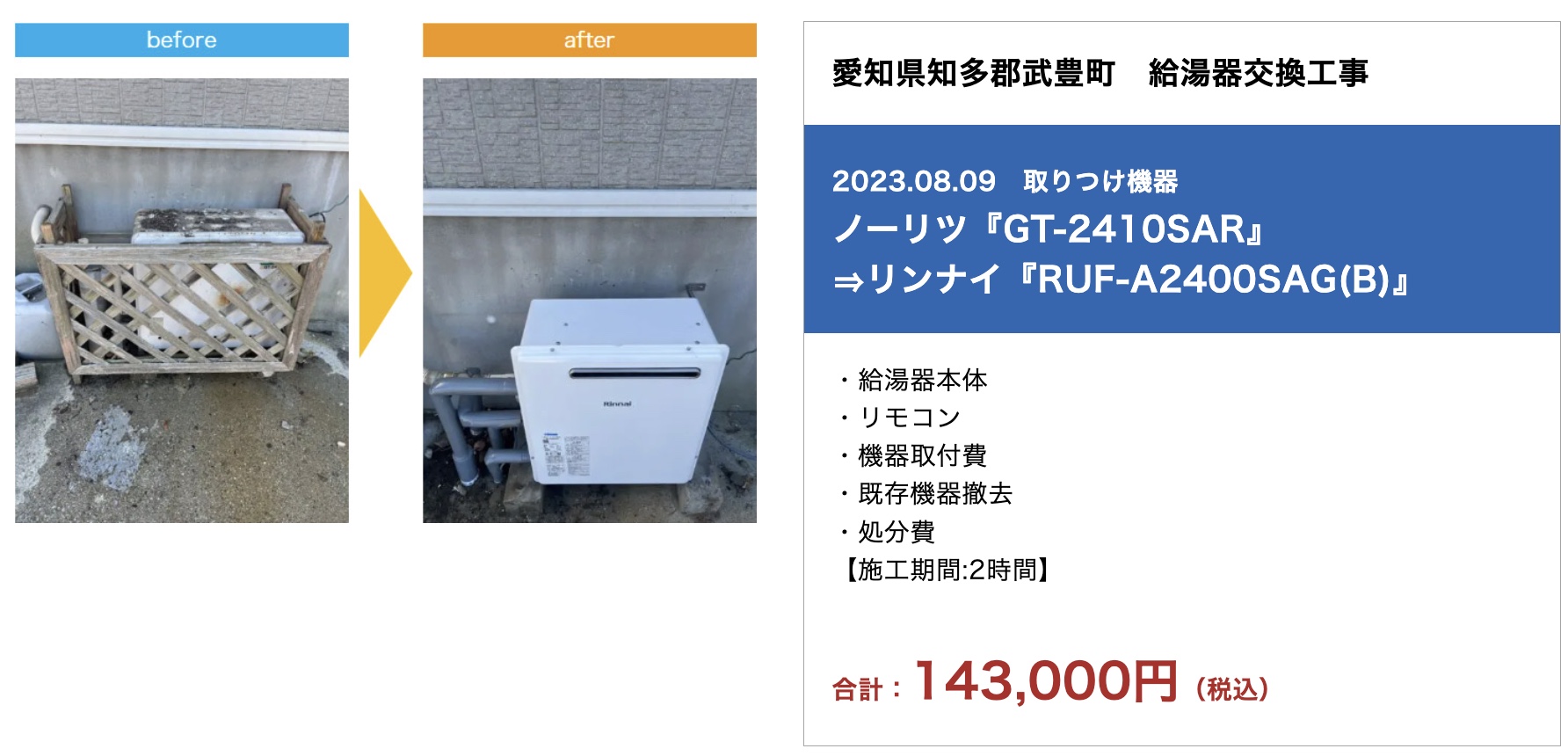 街角給湯器相談所の施工事例